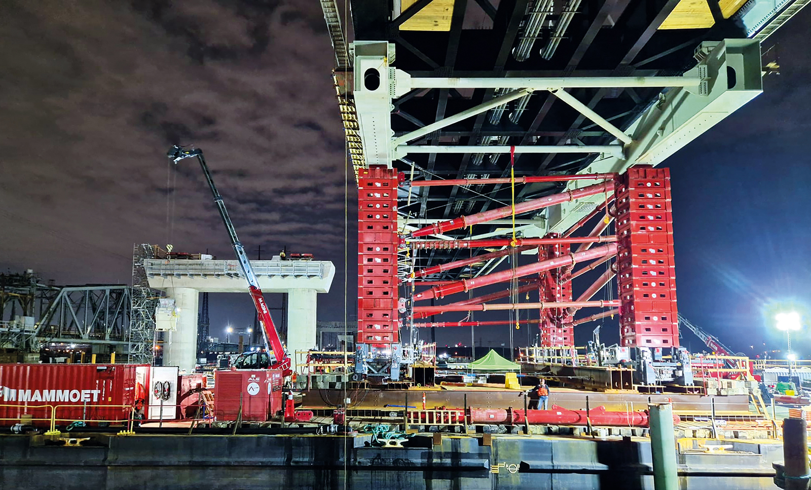 Dutch heavy lifting firm Mammoet used its Mega Jack system, designed to push exceptionally big structures, to jack each of the three bridge sections – each measuring over 120 metres – of the new Portal North Bridge used by trains linking Newark, New Jersey and New York.