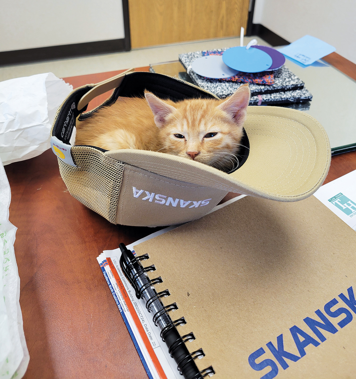 This kitty was spotted at a Skanska construction site in the US and rescued by project manager Sam Villalobos. Roxanne is now a treasured member of the project team. Female ginger cats are rare, making up only 20% of the ginger feline population.