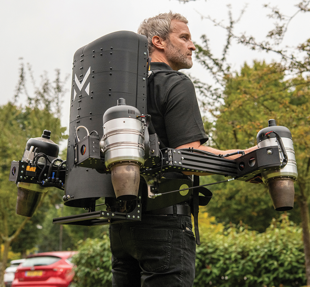 A new jetpack prototype could be used to tackle challenging construction tasks, according to its creators. Hollywood animatronics expert Matt Denton and Royal Navy commander Antony Quinn say the jetpack can be operated handsfree, to allow safer flights, and reconfigured as a heavy lift drone for remote operation.