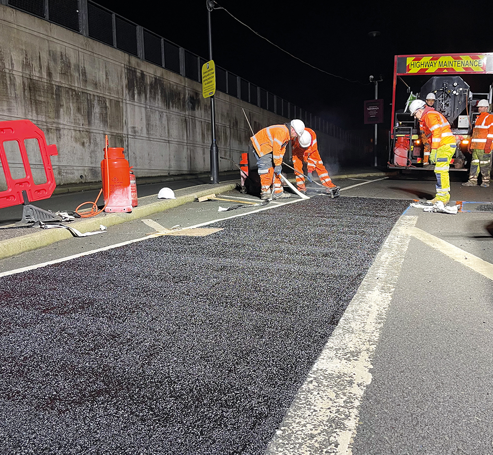Roadmender has been trialling its technology for around 14 months, on private roads, such as those at service stations or around ports, says Pearl. Having filled a crack or pothole, a further layer of the rubberised material is used to overseal the repair – once the original material has cured.