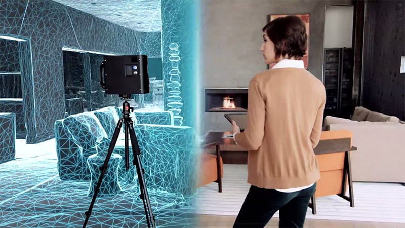 CH A camera device that records light and depth data to quickly generate an accurate photo-realistic 3D model of a space. The scans are created by moving the device to successive positions around a building, each scan rotation takes around 30 seconds.