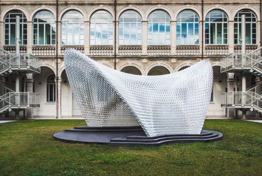 A pioneering lightweight architectural pavilion that fuses advancements in 3D printing with bio-inspired computational design has been completed in Milan.
