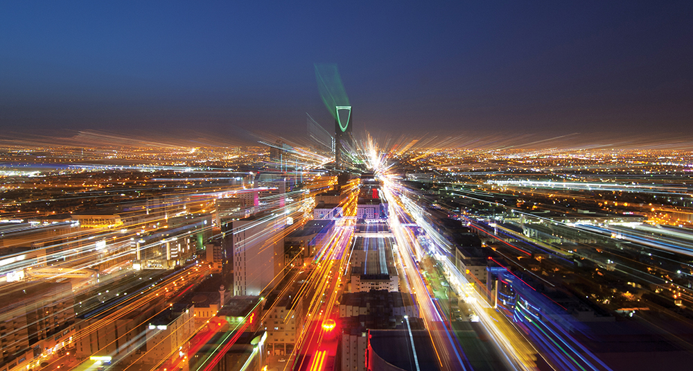 Riyadh at night: Egis is project managing four lines of the Riyadh Metro (Image: Dreamstime)