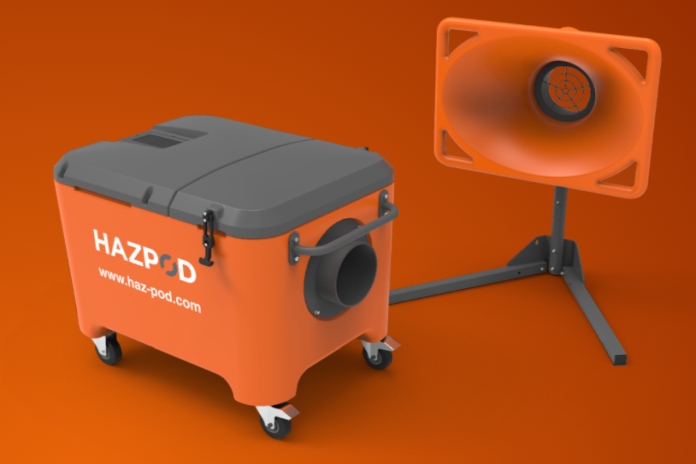 The Hazpod dust extraction unit, which has an airflow of 3,500m3, dependent on the filter arrangement, effectively captures the dust at source using a large collection hood that comes either with an existing stand or can be attached to scaffolding.