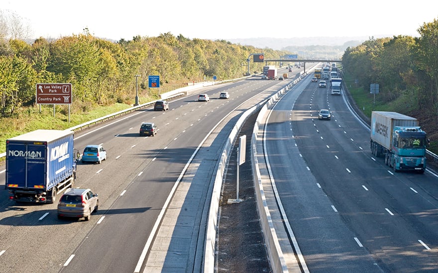 Improvements to the stretch of road between junction 25 at Waltham Cross and junction 27 at Epping, completed by Skanska Balfour Beatty on behalf of the Connect Plus consortium for the Highways Agency, involved widening the road, from three to four lanes in each direction, and installation of new on-road technology to manage traffic flow. The upgrade is expected to benefit around 175,000 drivers using that part of the network each day.