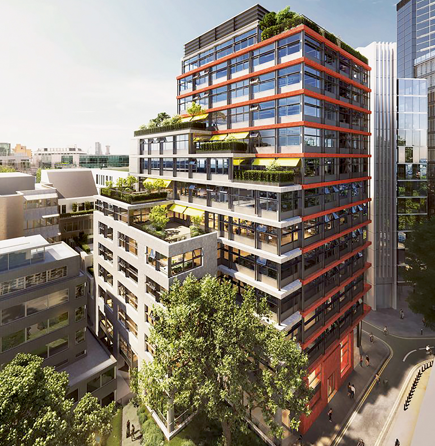 Having terrace setbacks means the structure reduces in size towards the upper levels. This presents a less formidable block in an area of the City that, in contrast to the well-known eastern cluster, does not have many buildings above 15 storeys high.