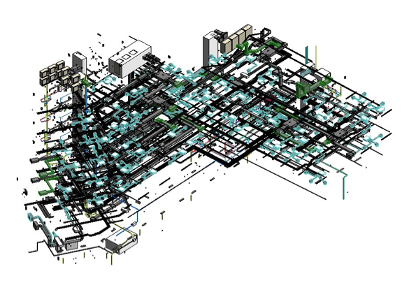 McBains team converted the radar cross-section data with Recap and subsequently built into a series of components and geometry within Autodesk Revit with phasing data attached.