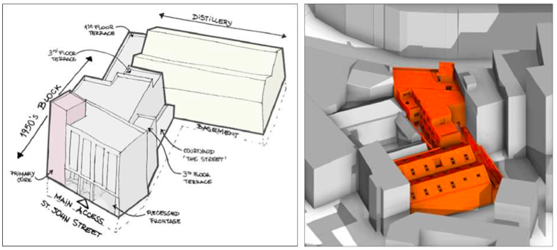- installing one additional floor above the 1950s building to provide additional (Class E1) office space.