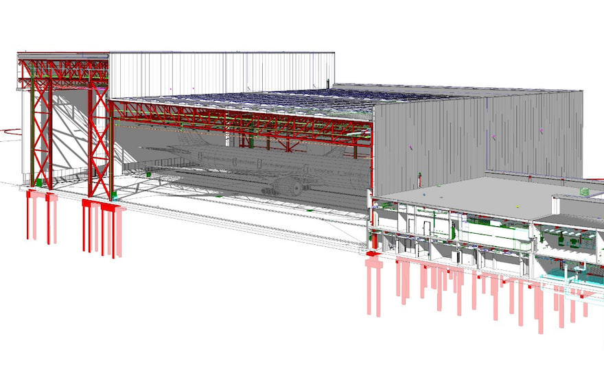 Appointed as the lead design consultant on the project, Mott MacDonald was contracted to deliver the structural, civil, infrastructure and MEP design, while structural steelwork contractor JD Pierce was tasked with detailing and fabricating the hangar’s steel frame. They both turned to Trimble’s suite of Tekla software for support.