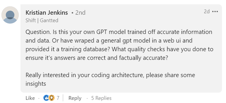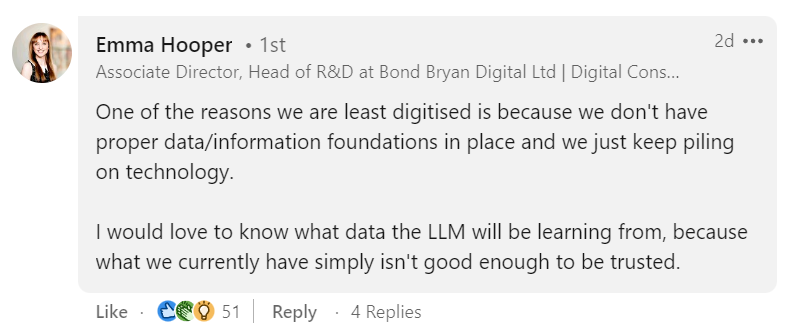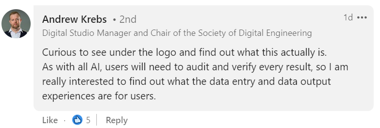 Munnelly claims in the post that ContructGPT will be the “first platform of its kind to revolutionise UK construction through AI”. However, LinkedIn users commenting on his post raised questions about how the chatbot will work or how it will train its algorithms.