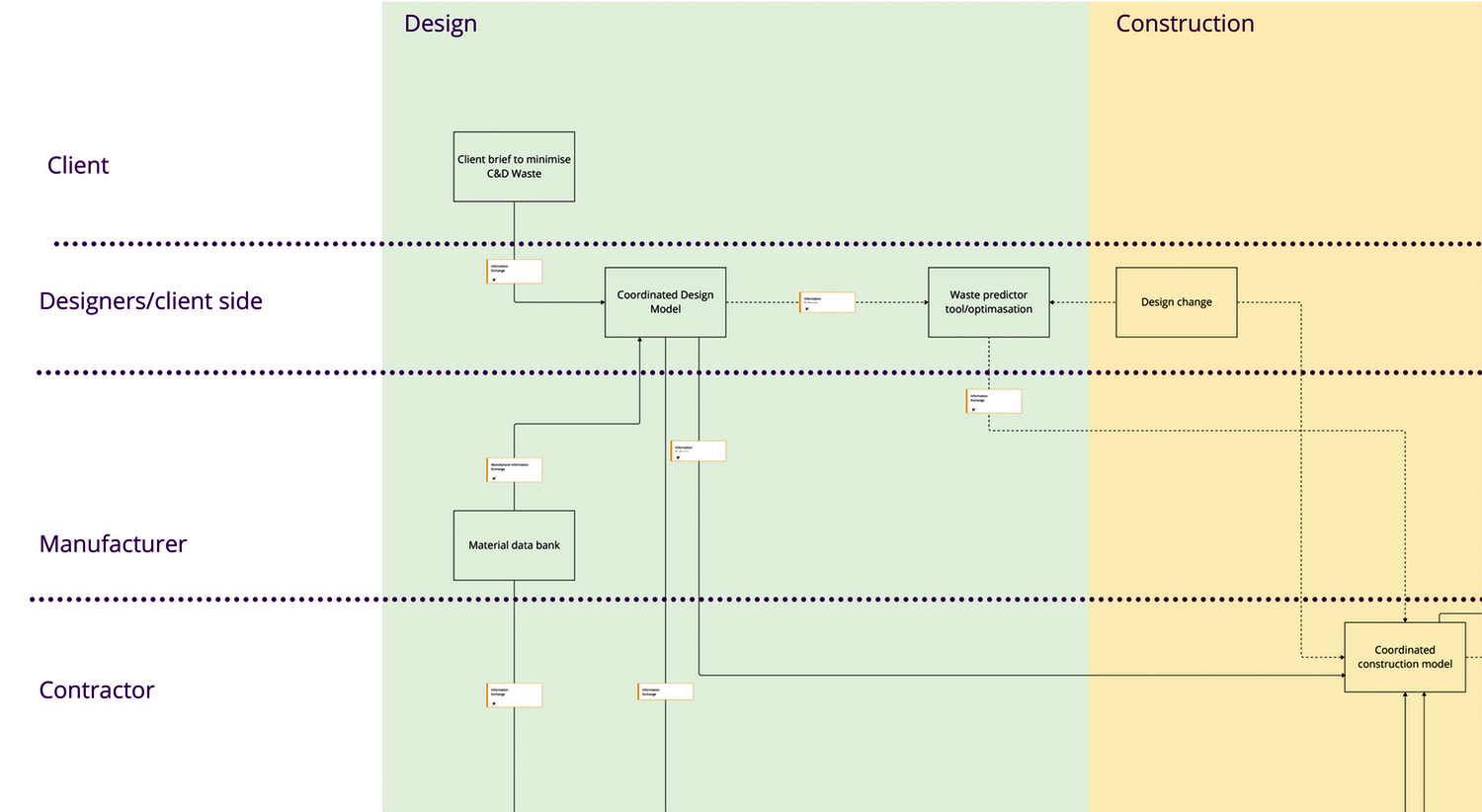 Our scope is solely focused upon C&D waste information exchange. While this may, on first appearance, seem straightforward, navigating through the process map quickly reveals complexities.