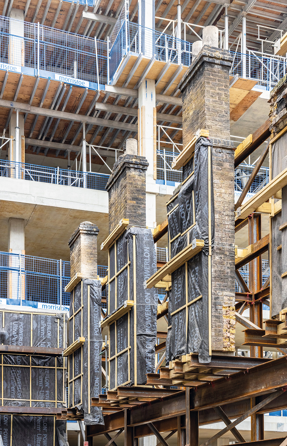 This is really several projects rolled into one, running concurrently and on top of each other. And each of the six plots has a section of retained building and a new build. “We are working across five or six plots all at the same time, all with their own rhythms and details,” says Skanska project director Graham Mercer. “The whole coordination piece was the biggest challenge.”