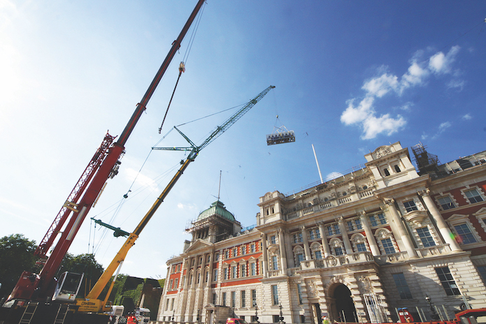 “The chillers were lifted in over the top of the OAB from Horse Guards Parade using a 350-tonne crane, in a single day,” says Linfoot. “City Lifting had to supply us with a higher-than-normal capacity crane as we needed a wider angle to lift the chiller units over the antenna wires running into the neighbouring MOD building.”
