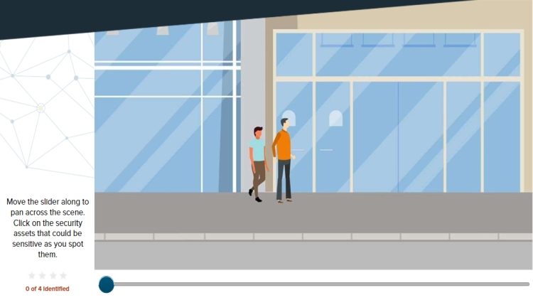 Players are challenged to pinpoint security sensitivities in two hypothetical scenarios – on the street and inside a building – determining which elements of an asset are sensitive and need protecting, and which are benign.