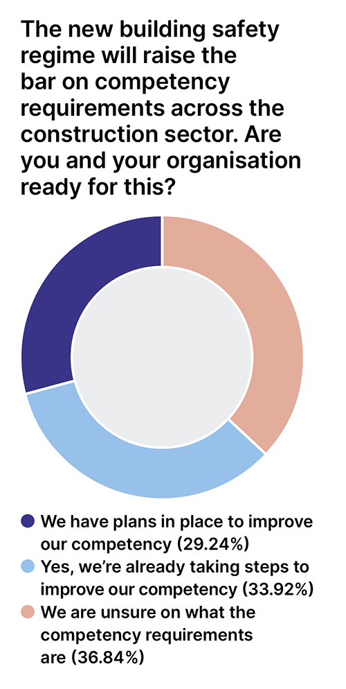 When it came to the way in which the new building safety regime is expected to raise the bar on competency requirements across the sector, the picture was more positive. More than a third (33.9%) of respondents said they were already taking action, and another 29% said they had plans in place to improve competency.