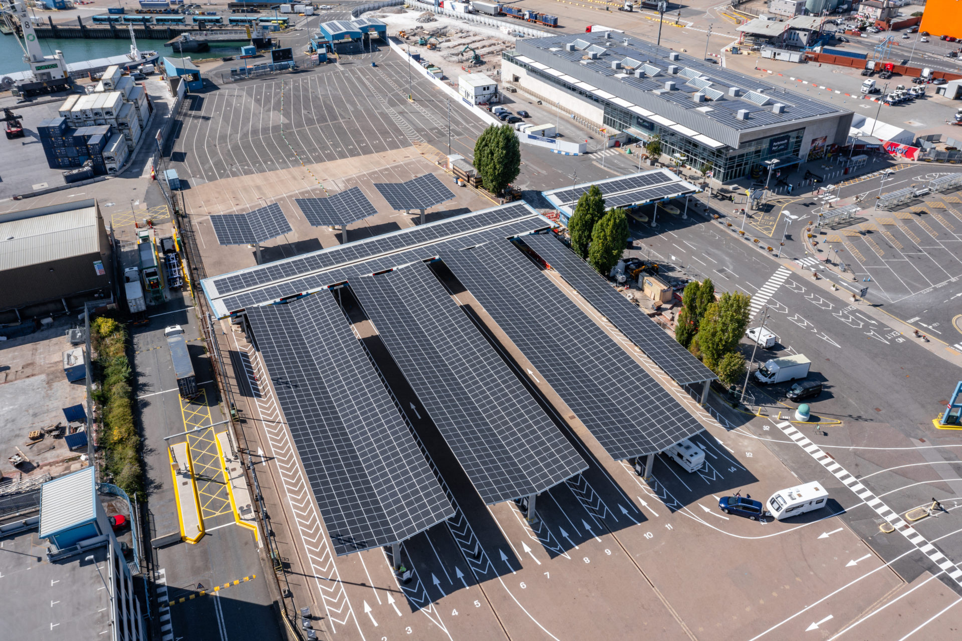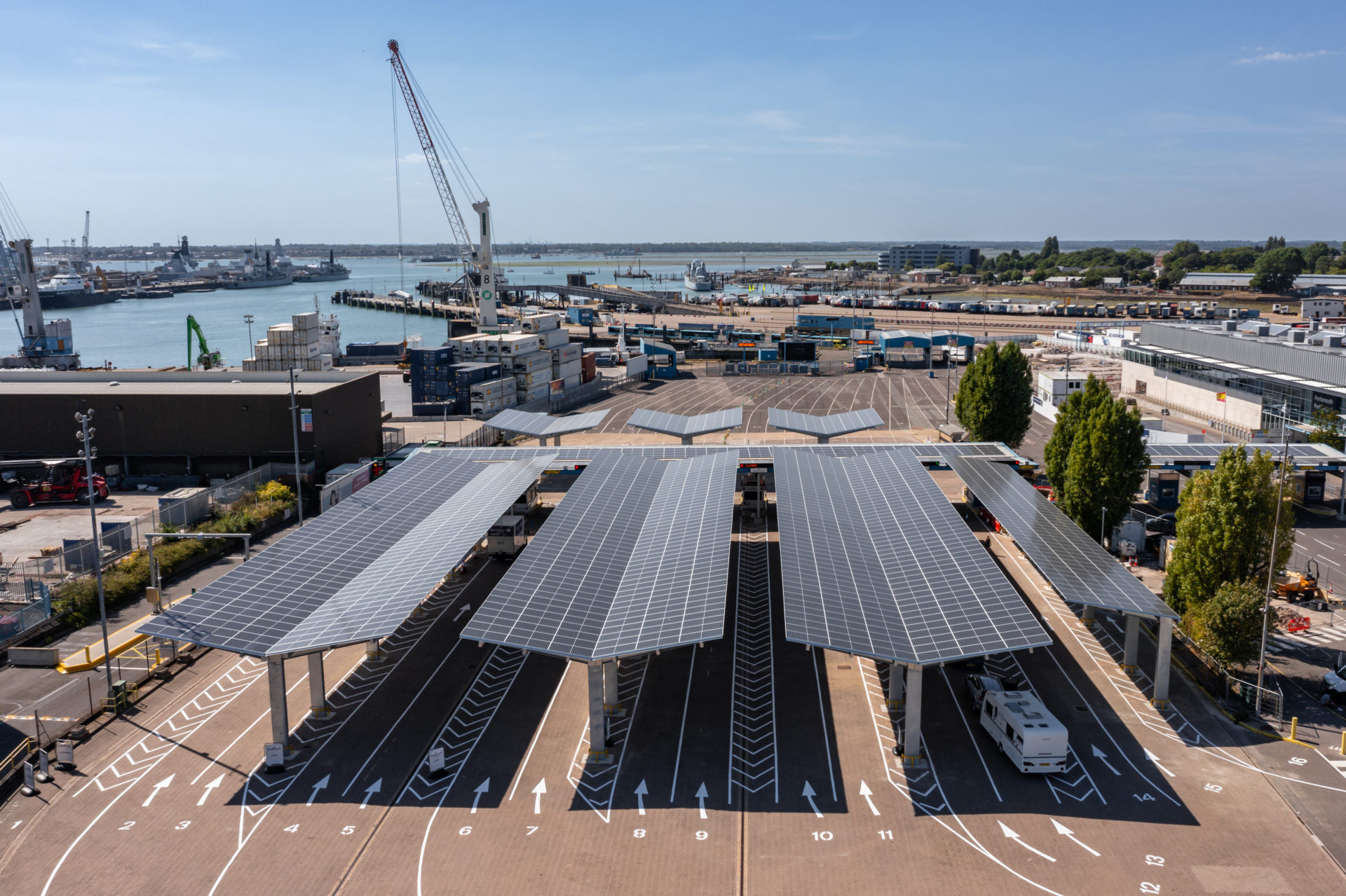 As well as generating carbon-free power, the solar canopies will provide shade for cars waiting to board ferries.
