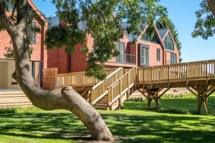 A total of 11 flood-resistant homes that employ a host of innovative features to keep their residents dry have been built on a flood plain in Stratford-upon-Avon.