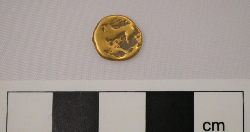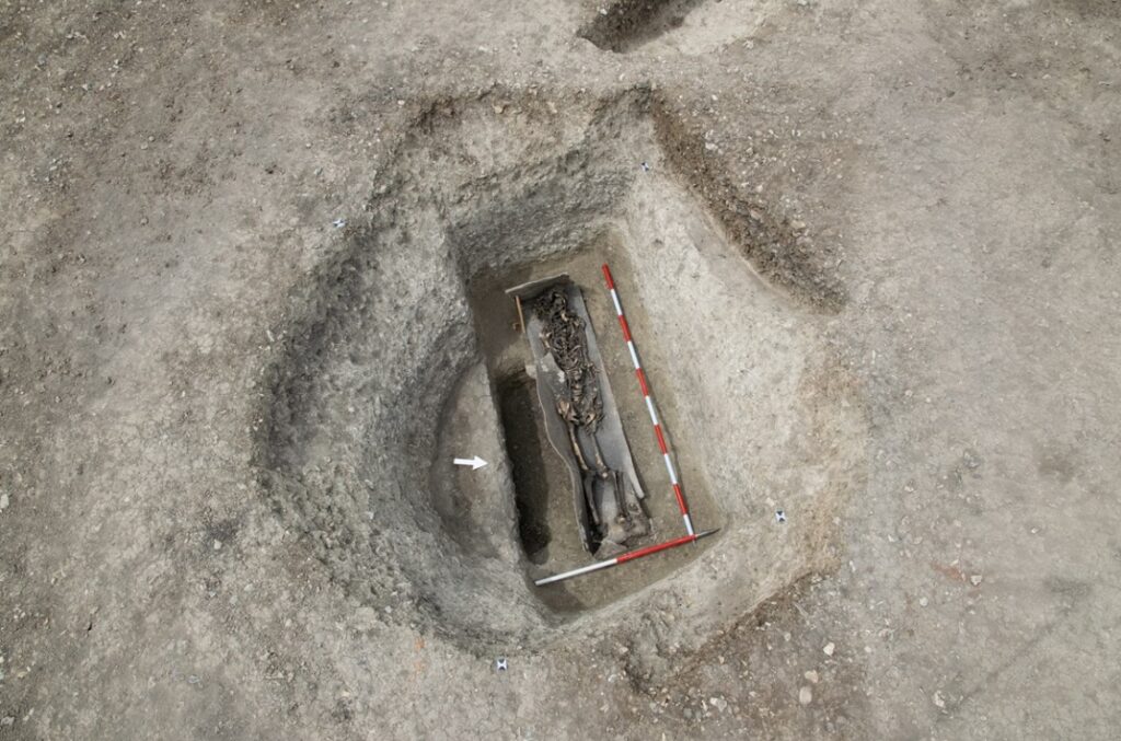 A skeleton from the Iron Age site was discovered buried face down and with hands tied. The unusual burial position of the adult male suggests he may have been a victim of a murder or execution. Osteologists are currently examining the skeleton for further evidence of foul play.