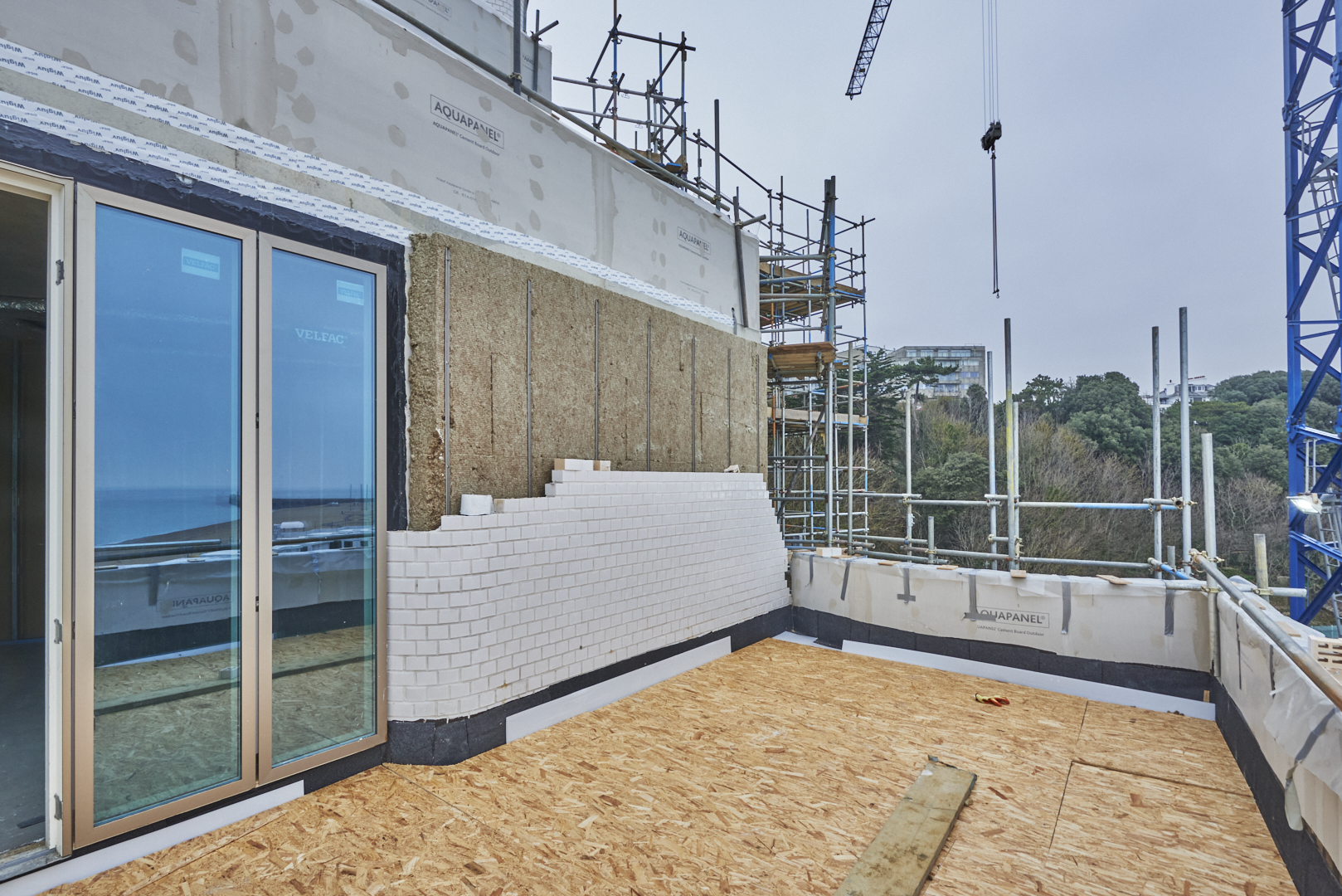 The building will be faced with white glazed bricks from La Paloma in Spain, as well as white mortar, to protect it from the likelihood of extreme weather and salt spray. More than 24 different specialist bricks are used to create the complex geometry of the convex and concave waves of the facade.