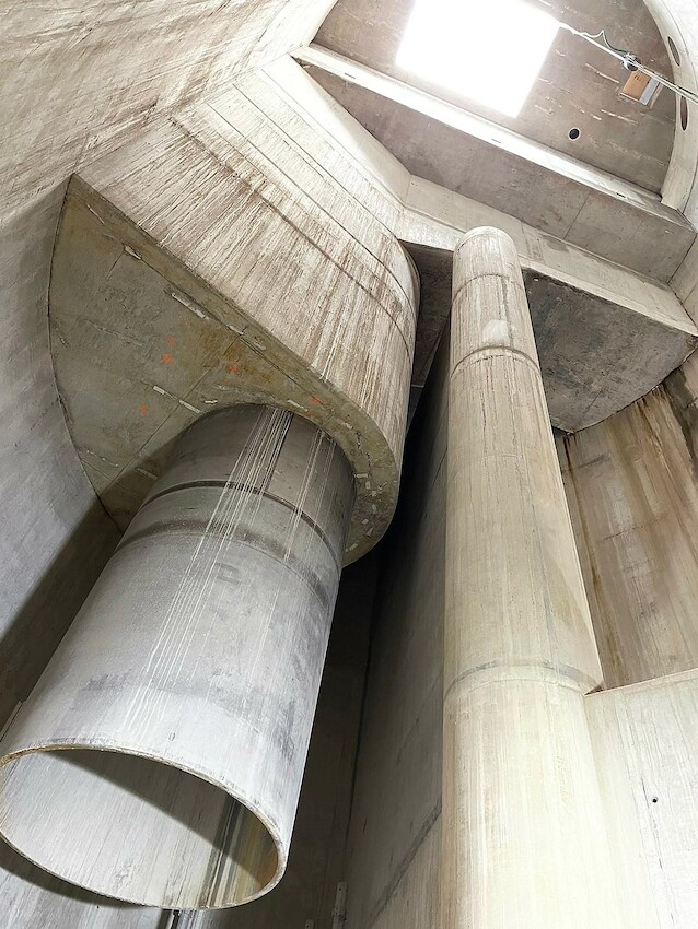The vortex tube and dividing wall dominate the finished Dormay Street shaft (Image courtesy of RMD Kwikform)