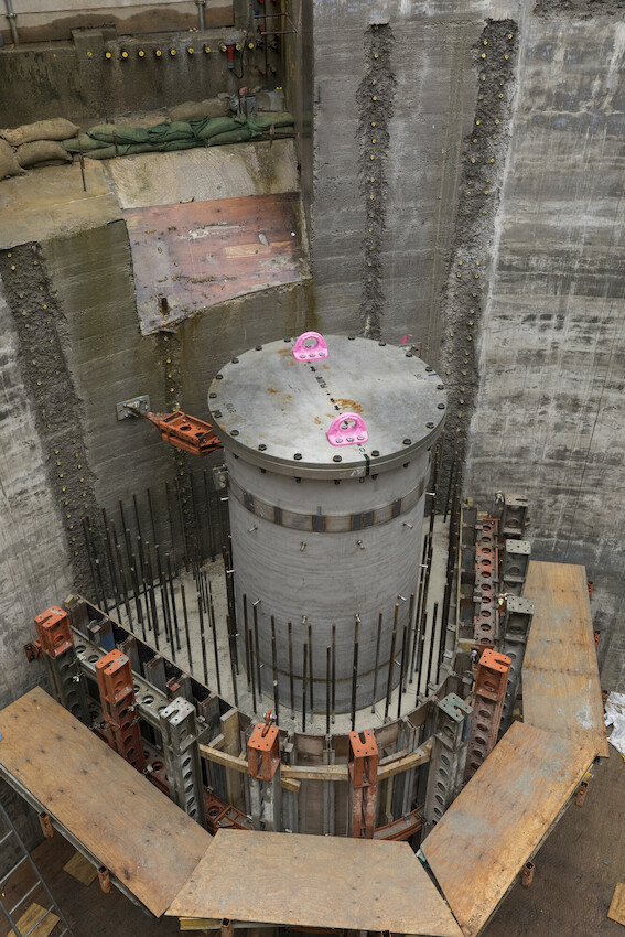 The construction process involved the breaking out of the vortex safety grill chamber, which controls the flow of sewage and wastewater into the tunnel. Here, five separate levels of concrete had to be cut, slid out, and then removed safely from the shaft. All this work had to be undertaken while avoiding the surrounding ground shoring props.