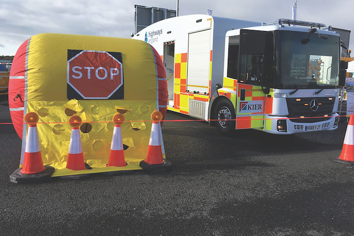 Kier Highways is to trial a new airbag in the Midlands that protects workers and warns drivers that work is underway. The large, bright airbags can be inflated in under 10 minutes. Kier started using the barrier on a slip road at the A45/A46 Stivichall interchange in Coventry in October. The £95,700 cost of the airbags trial was met through the Highways Agency’s Designated Funds programme.