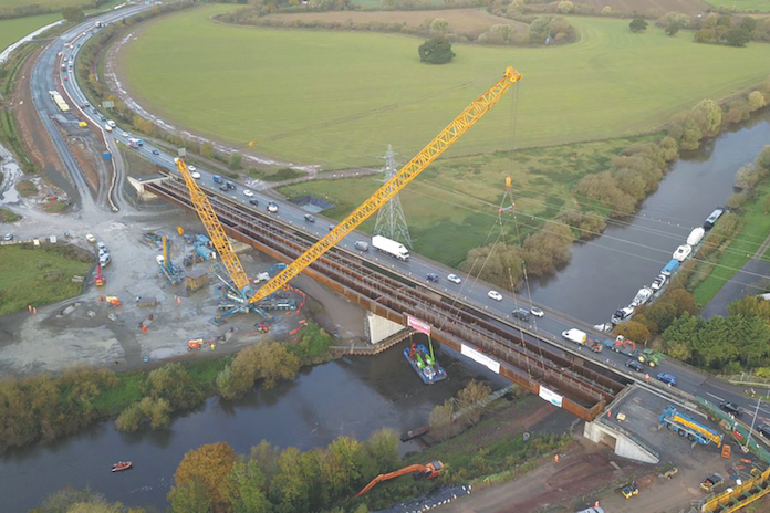 Steelwork on the first UK bridge to use a higher-strength grade of weathering steel has been installed. Engineering consulting group COWI is working with contractor Alun Griffiths on the construction of the 205m-long Carrington Bridge in Worcester, which converts the A4440 from single to dual carriageway. COWI said using the stronger grade of steel has reduced the total material quantity by 15%.