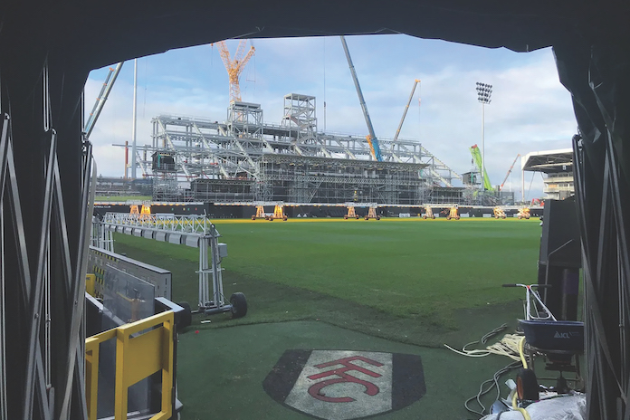 Large sections of the steel frame for Fulham FC’s new Riverside stand have now been erected by contractor Buckingham. Work on the stand at Craven Cottage began in May last year and is scheduled to take two years to complete. The new two-tier structure, designed by architect Populous, will add 4,000 new seats, taking the stadium’s capacity to 29,600.