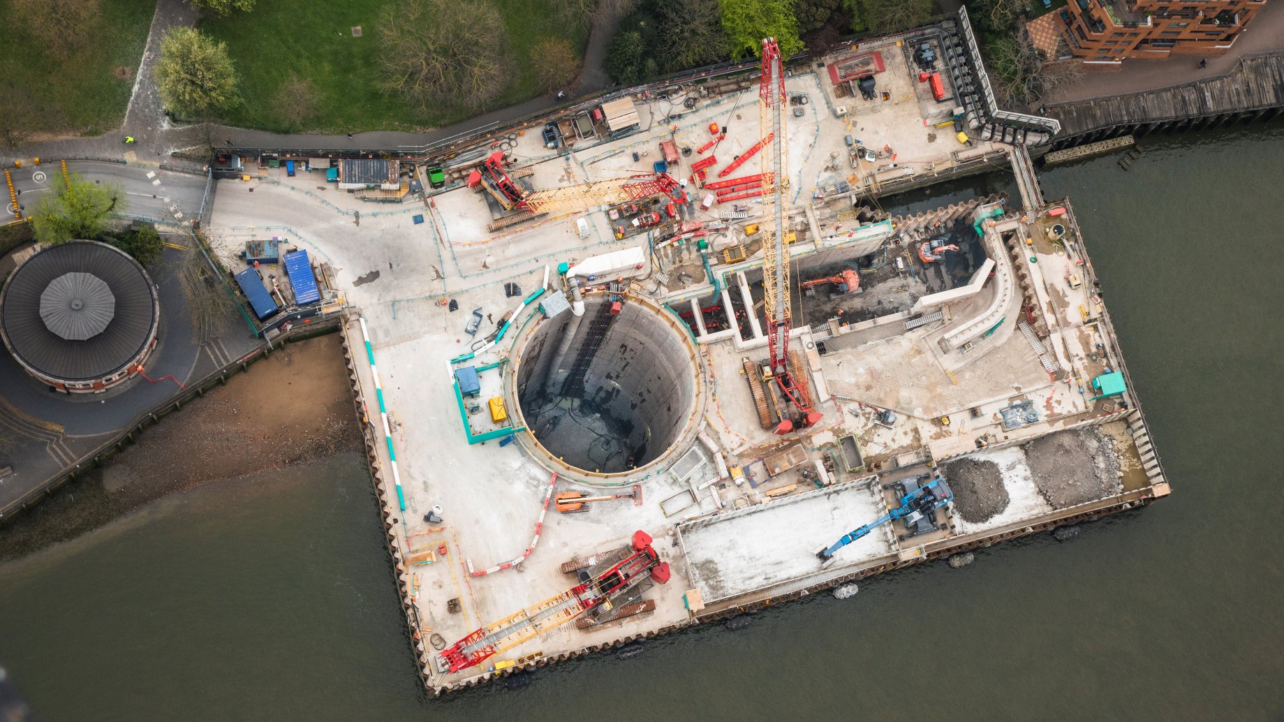 To mark the digging of the final shaft, Tideway has release new aerial imagery, showing the new land being built in the River Thames, created to allow Tideway to expand upon the existing sewer network.