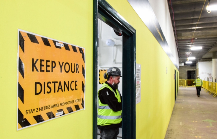 Motion-activated voiceover systems are currently being used on Willmott Dixon’s sites in the North, remind workers at key points on sites such as entrances to maintain a 2m distance from colleagues and to wash their hands. This will soon be rolled out nationally.