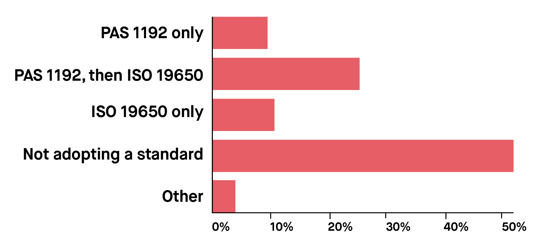 Perhaps surprisingly, just over half of respondents have not adopted a BIM standard, with the rest of the respondents on board with one.