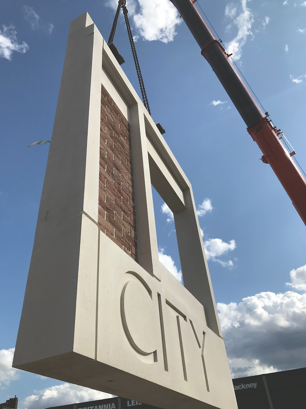 Work on the City of London Academy to install the facade panels, comprising large double-window, storey-height units with integral bricks, copings and cills, commenced on programme last May. One of the key stones at the front of the building contains the City of London emblem which was cast into the precast unit from a rubber mould. This unit was installed in early June. Sterling’s work on the Hackney scheme is continuing into 2021.