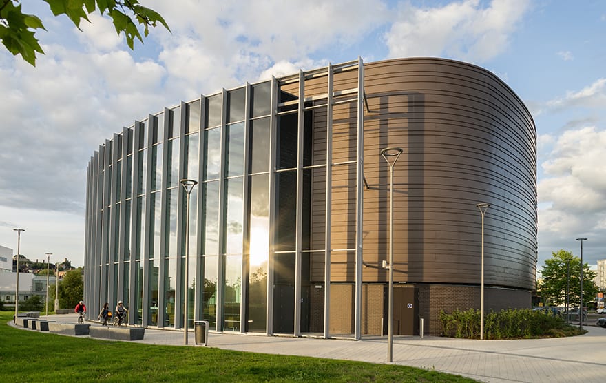 Lipinski explains: “We had to design within the constraints of the viewing corridor for Lincoln cathedral just 500m away. In addition, we needed to connect an existing building over the top of a culvert on a tightly constrained site. Meanwhile, all the building work was carried out while students were still on campus attending the university.”