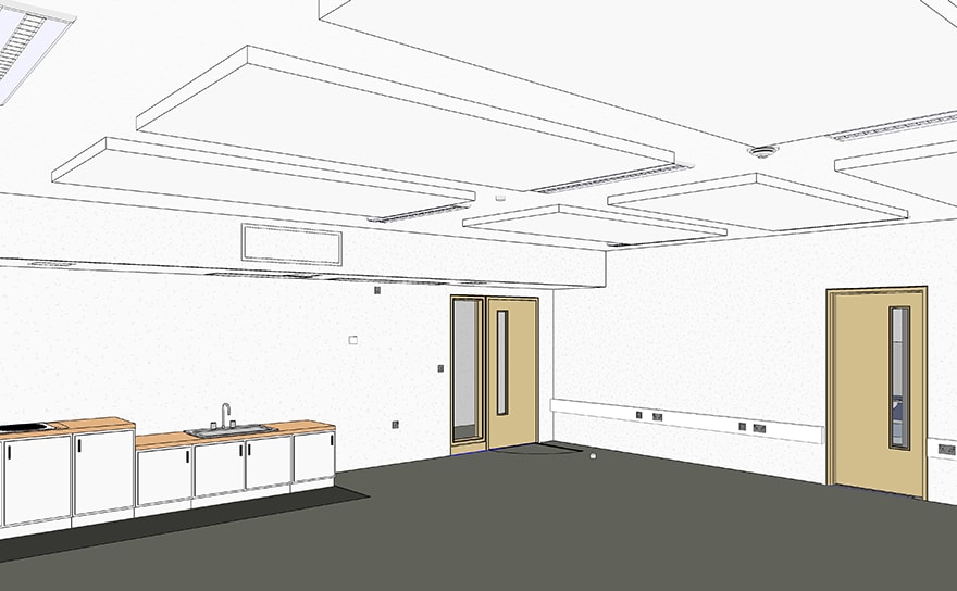 The use of BIM was informed by several key lessons learnt on the previous Holborough Lakes Primary School project, also in Kent (see the BIM+ case study here), which used the same team of consultants: architect Hazel McCormack Young; services engineer Crofton Design; structural engineer Campbell Reith; Baxall Construction; and BIM consultant Rapid 5D. Many of the original supply chain members were also involved.