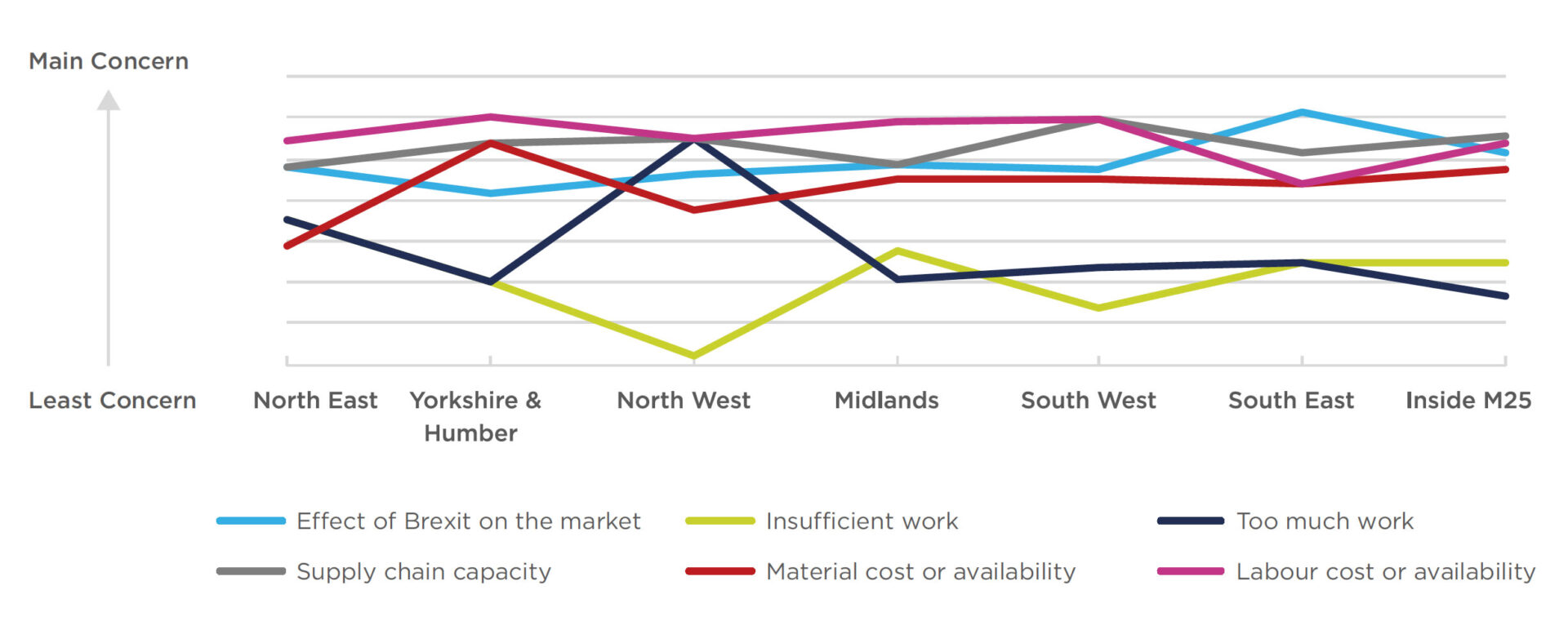 When it came to contractors’ concerns about the next 12 months, they were chiefly worried about supply chain capacity, material costs and availability of materials. The impact of the UK’s departure from the European Union on future workload only ranked fifth out of a list of six different concerns.