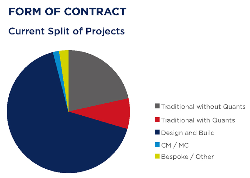 - 66% of projects were utilising design and build contracts