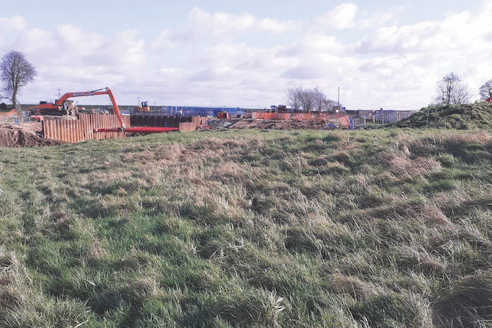 Construction on the Islington pumping station on the River Great Ouse; the rough grassland will be enhanced as part of the biodiversity net gain work