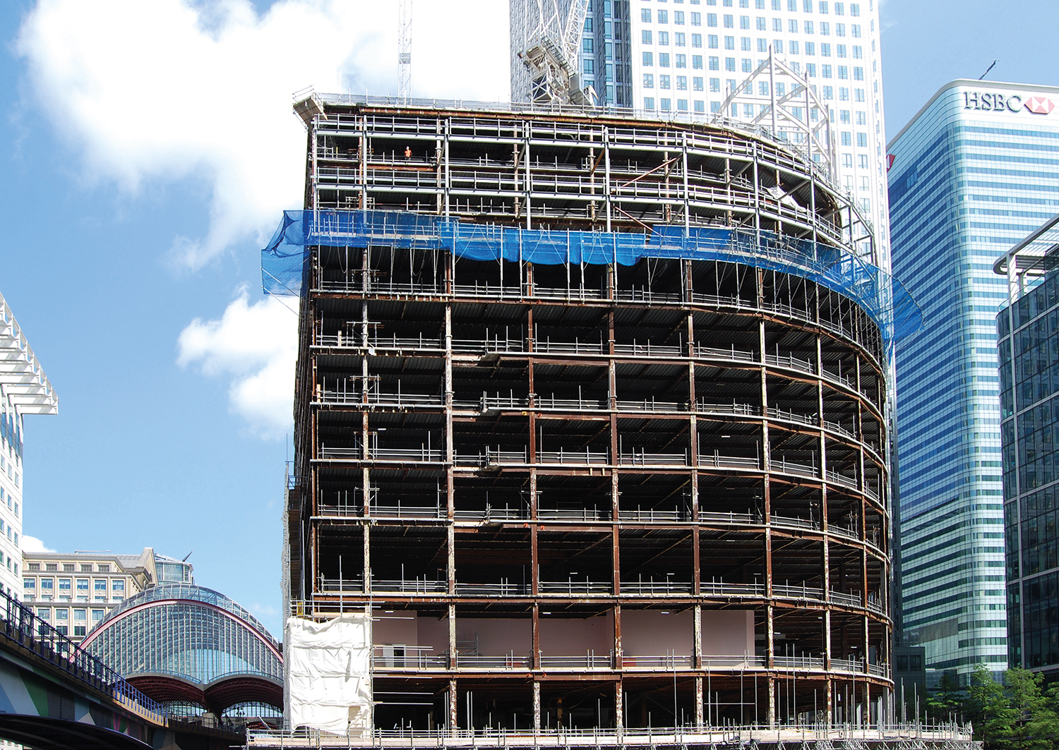 Y London – originally known as 30 South Colonnade – dates back to 1991. It is one of Canary Wharf’s first steel-framed office blocks. Over the past two years, Skanska has been stripping the building back to its structural frame, extending it upwards with three new floors and reconfiguring the internal space from the ground up.