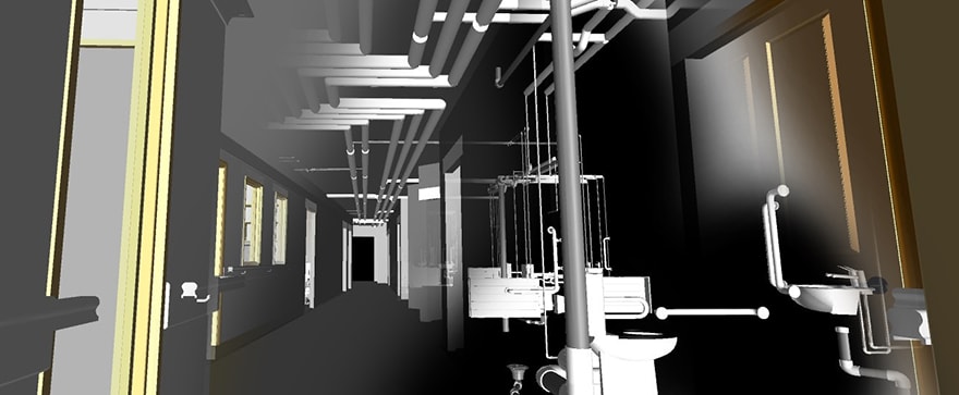 Brill says: “There’s a lot of academic theory about BIM, but we needed to actually do it. Basically we discussed with the employer what information we needed and wanted. We agreed that the outputs should be clash analysis, information on the assets and 3D visualisations for clients.”