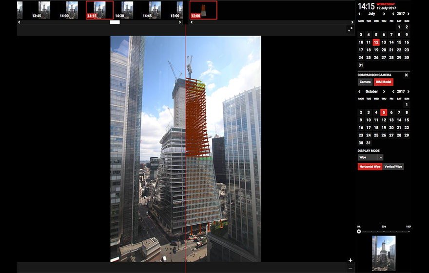 Using a process Lobster Pictures has developed in collaboration with Synchro Software, a model is placed into the as-built photographic record, which can then be compared to any point in the past, or “fast forwarded” to view how the building will look into the future.