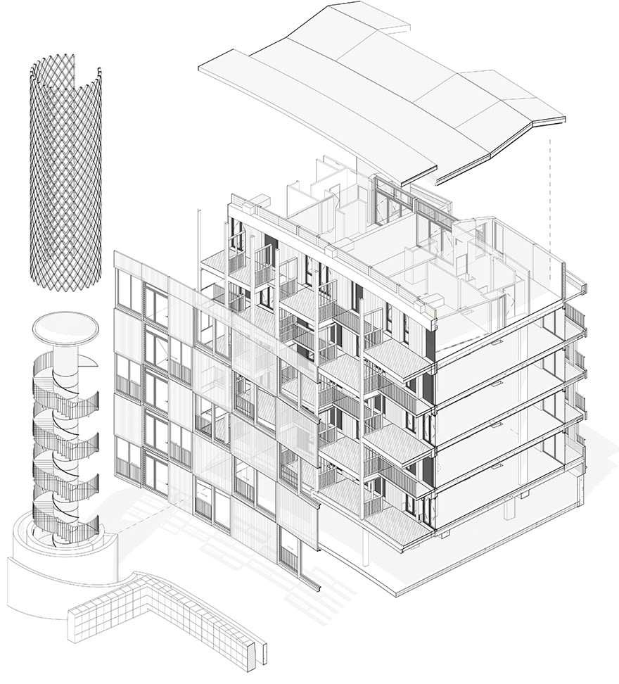 The innovative access gallery space, with its interconnected balconies, required a highly bespoke fire engineering design. Revit was utilised by Max Fordham to develop a computational fluid dynamics model of smoke extraction. In addition, the firm used it to perform SAP calculations for individual dwellings and heat gain calculations for the winter garden space.