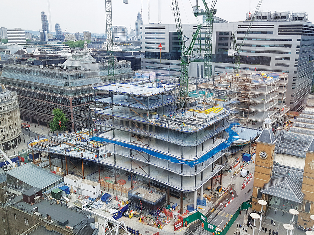 Totalling 66,000 sq m, 100 Liverpool Street consists of two steel-framed buildings that have been reconfigured and enlarged into a single structure. This has achieved a 40% increase in leasable area while reusing 50% of the existing superstructure and 100% of the foundations.