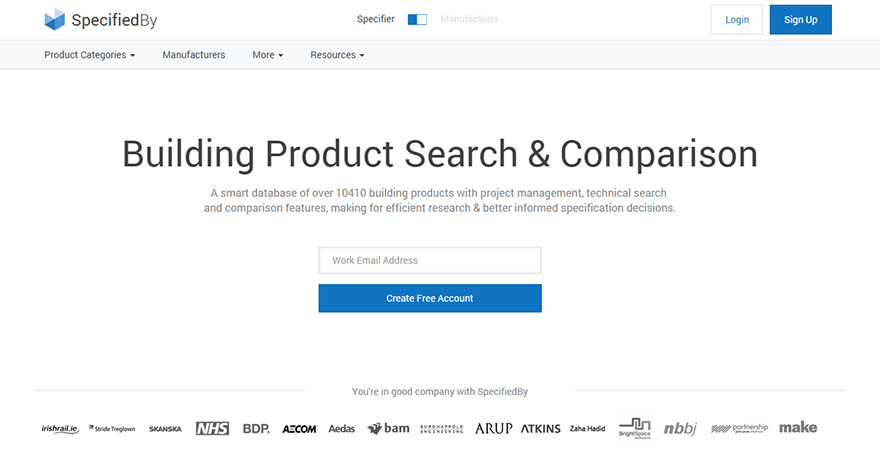 SpecifiedBy is a database of 10,410 building products featuring advanced filtering, search and comparison functions