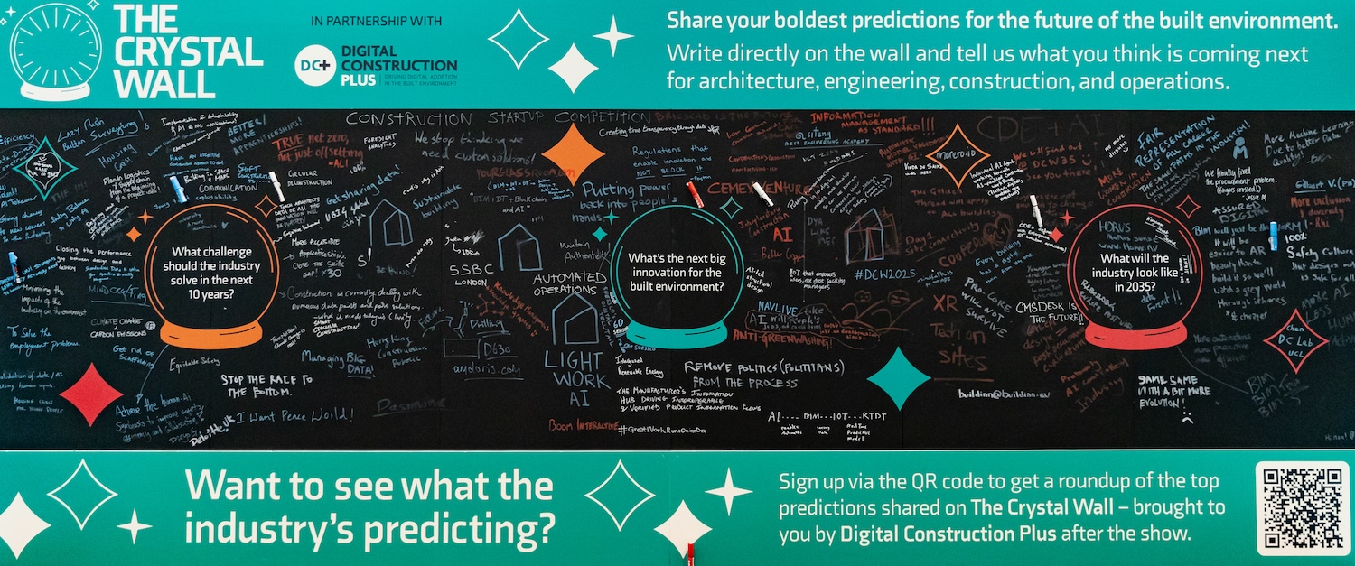 This year’s Digital Construction Week (DCW) featured a ‘Crystal Wall’, which invited delegates to future-gaze by writing down their hopes and fears about the digital construction sector, to mark the event’s 10th anniversary.