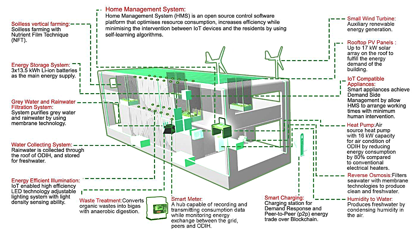 Goal 11 - Sustainable Cities and Communities: The ODIH is designed to be the core of smart cities of the future. By being genuinely self-sustaining and employing digital connection to the outer world, similar units will be easily connected to each other to form new sustainable communities.