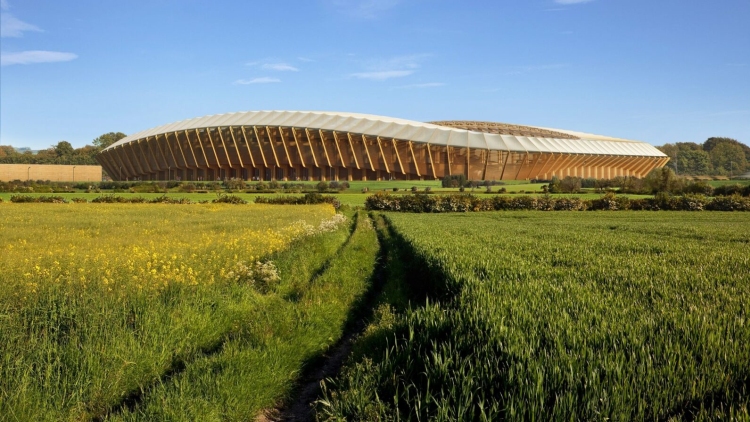 Forest Green Rovers is moving forward with plans to build a 5,000-seat timber stadium called Eco Park, after the scheme was given the green light by the English Football League early in 2021. The project has been designed by Zaha Hadid Architects.