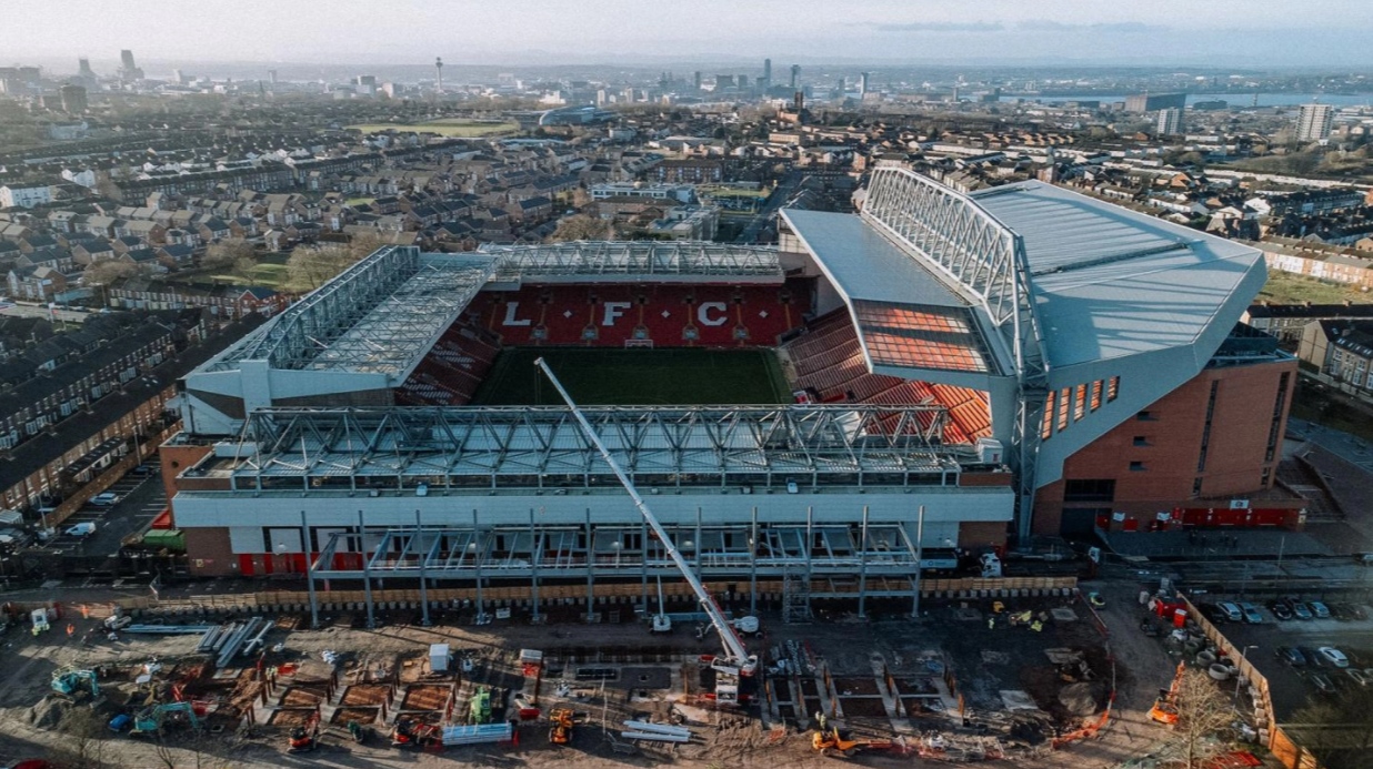 Stadium construction specialist Buckingham Group is building a 7,000-seat expansion of its Anfield Road stand. A total of 12 steel Y columns were installed in December 2021, as part of the £60m project. The new columns prevent weight being transferred to the existing stand and form a void underneath that will become an extended lower concourse area.