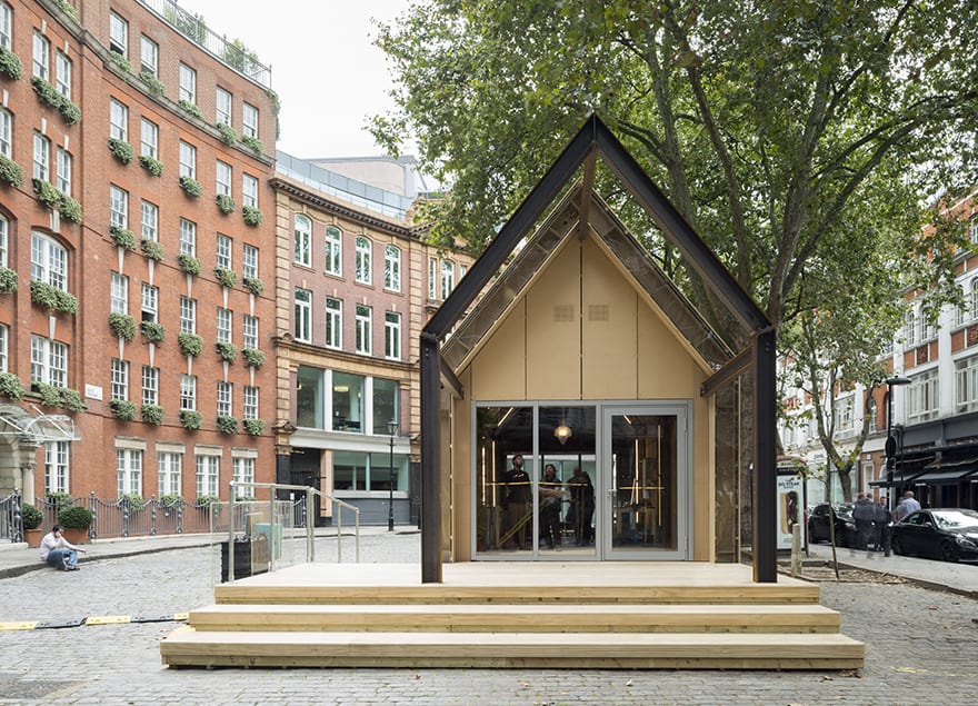 The building has been erected outside The Building Centre in Store Street, London, as part of The Circular Living exhibition at the London Design Festival. It is made of components that are completely non-toxic, mostly natural and easily recyclable or upcyclable. The whole structure is made of prefabricated elements that can be easily taken apart and used to build another, different, house elsewhere.