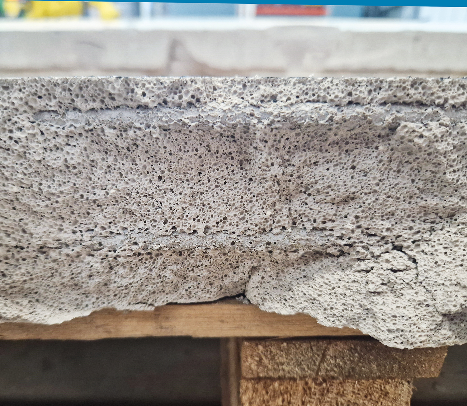 RAAC is the reinforced version of autoclaved aerated concrete (AAC). The lightweight cementitious material is ‘bubbly’ in appearance and typically reinforced by steel bars or mesh to enhance its structural strength.