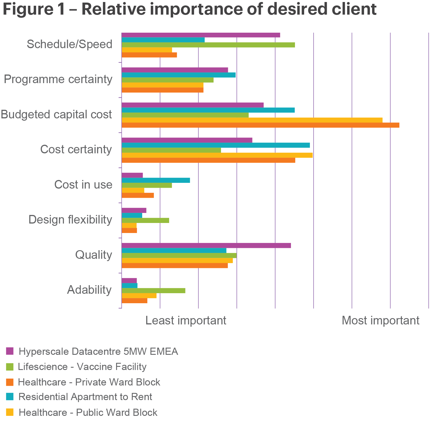 Overall cost has some significance, but an accurate up-front estimate, which allows clarity around the investment decision, is seen to be highly important. This is because surprises can be minimised, resulting in more reliable budgets. For this reason, life sciences clients require strong project controls to ensure they deliver to the standards needed within budget and agreed schedule.